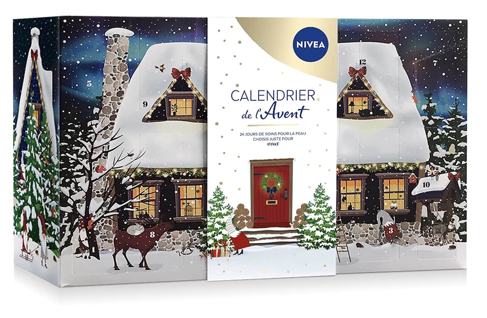 Le calendrier de l’Avent 2021 de Nivea propose 24 produits de soin et accessoires pour se chouchouter avant les fêtes. Il se présente dans un coffret au décor parfait pour noël.