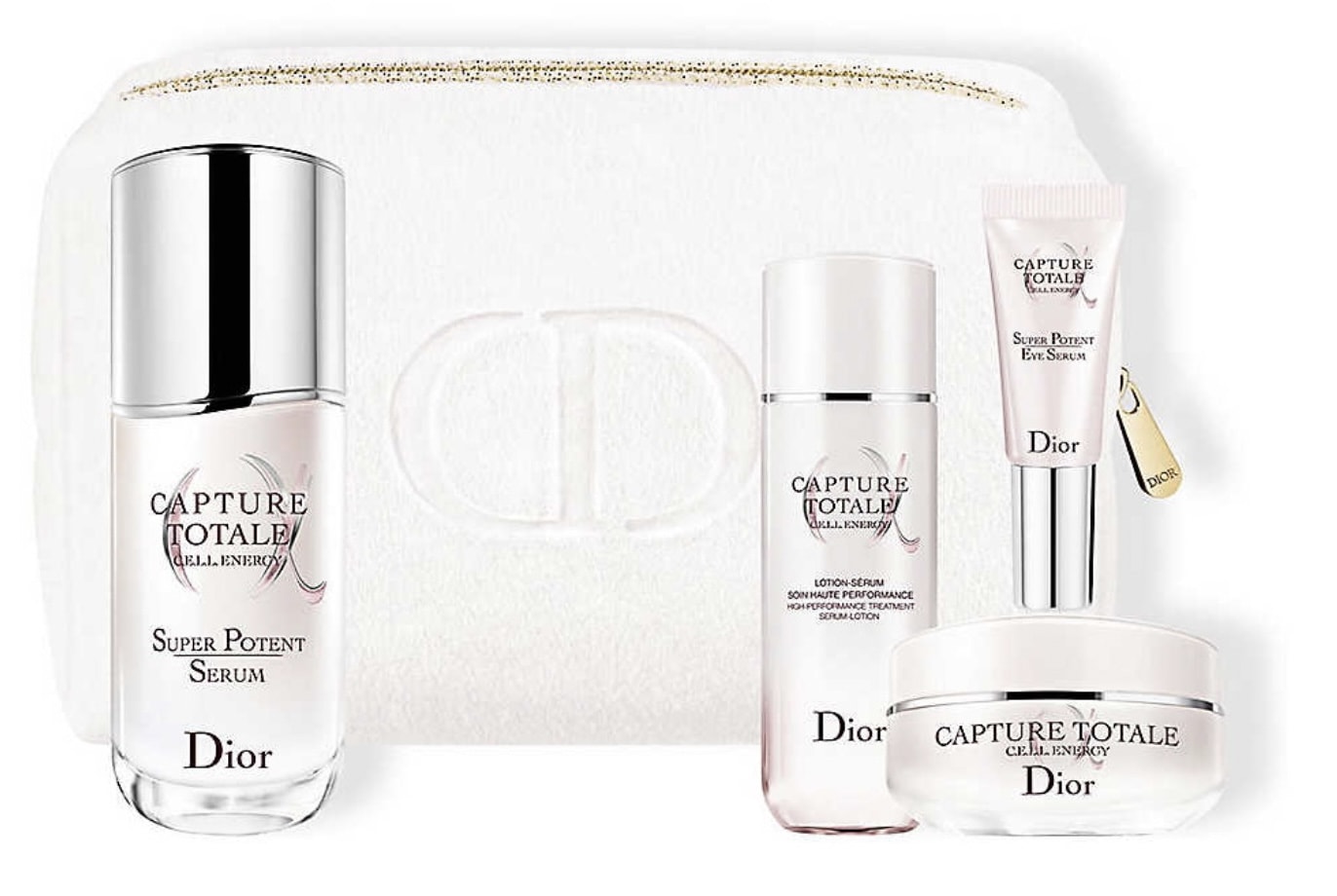 Dans ce coffret plus luxueux vous retrouverez quatre produits de la gamme Capture Totale avec sa trousse de toilette. A l’intérieur la Lotion sérum en 50ml, le Capture Totale Super Potent Serum en 50ml, la crème en 15ml, et la crème pour les yeux en 5ml.