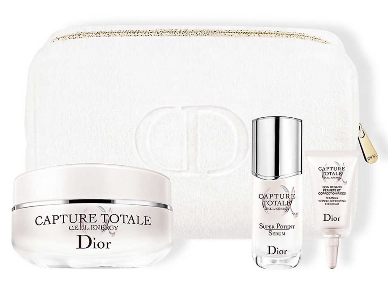 Ce coffret des fêtes de fin d’année est parfait pour celles et ceux qui recherchent une routine de soin. A l’intérieur trois produits de la gamme Capture Totale avec le sérum (10ml), la miniature de la crème pour les yeux (5ml) et la crème visage en 50ml. Le tout accompagné d’une trousse effet polaire blanche avec les initiales CD.