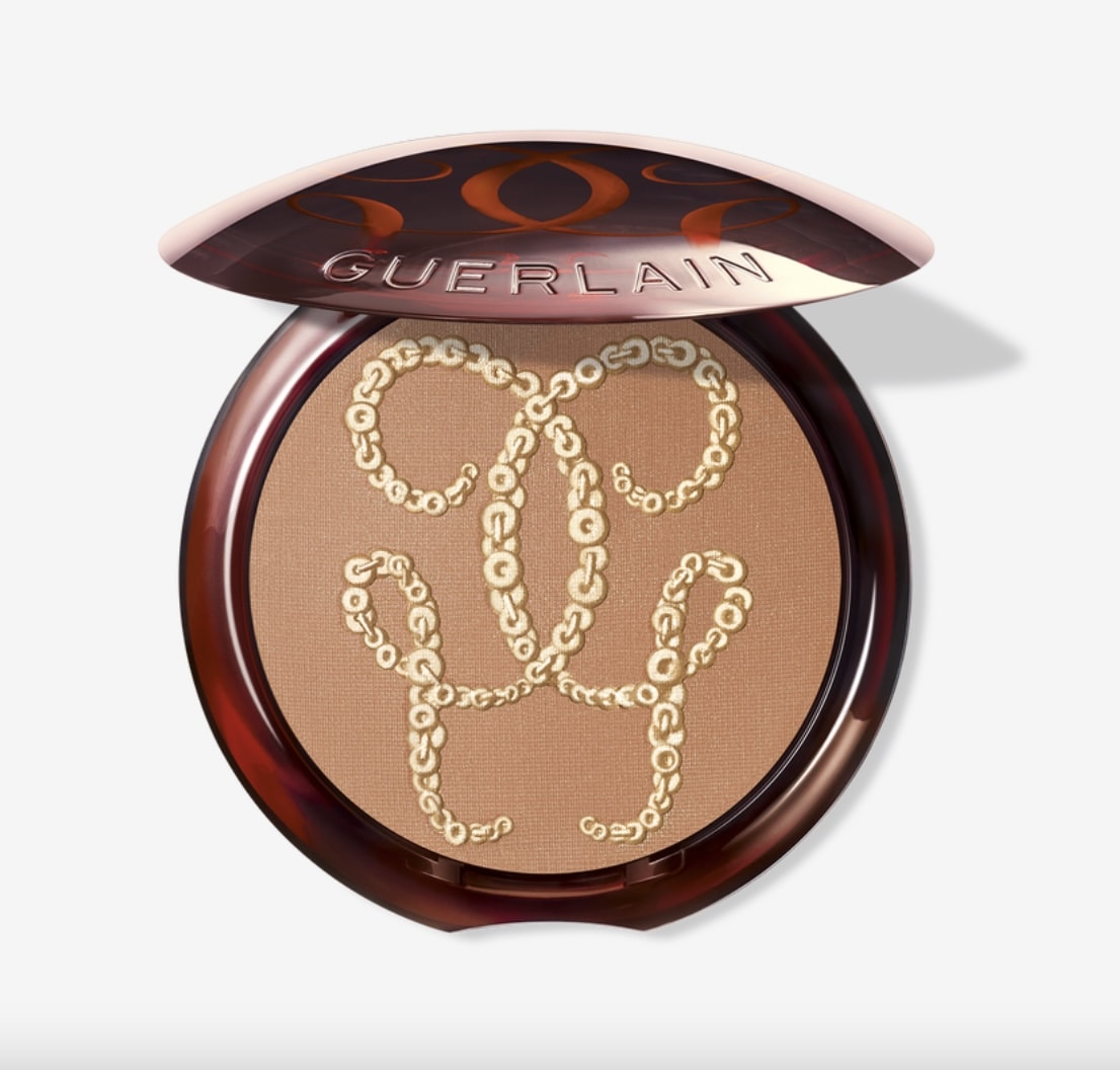 L’emblématique poudre bronzante Terracotta met son habit de fête pour cette collection de Noël. La nuance phare 03 se pare de son double G avec des sequins dorés. La formule est toujours la même, 96% d’ingrédients d’origine naturelle avec son parfum d’Ylang-ylang, de fleur d’oranger, fève tonka, vanille, et une touche de musc blanc. Elle sera parfaite pour vous donner bonne mine avec les températures hivernales qui arrivent.