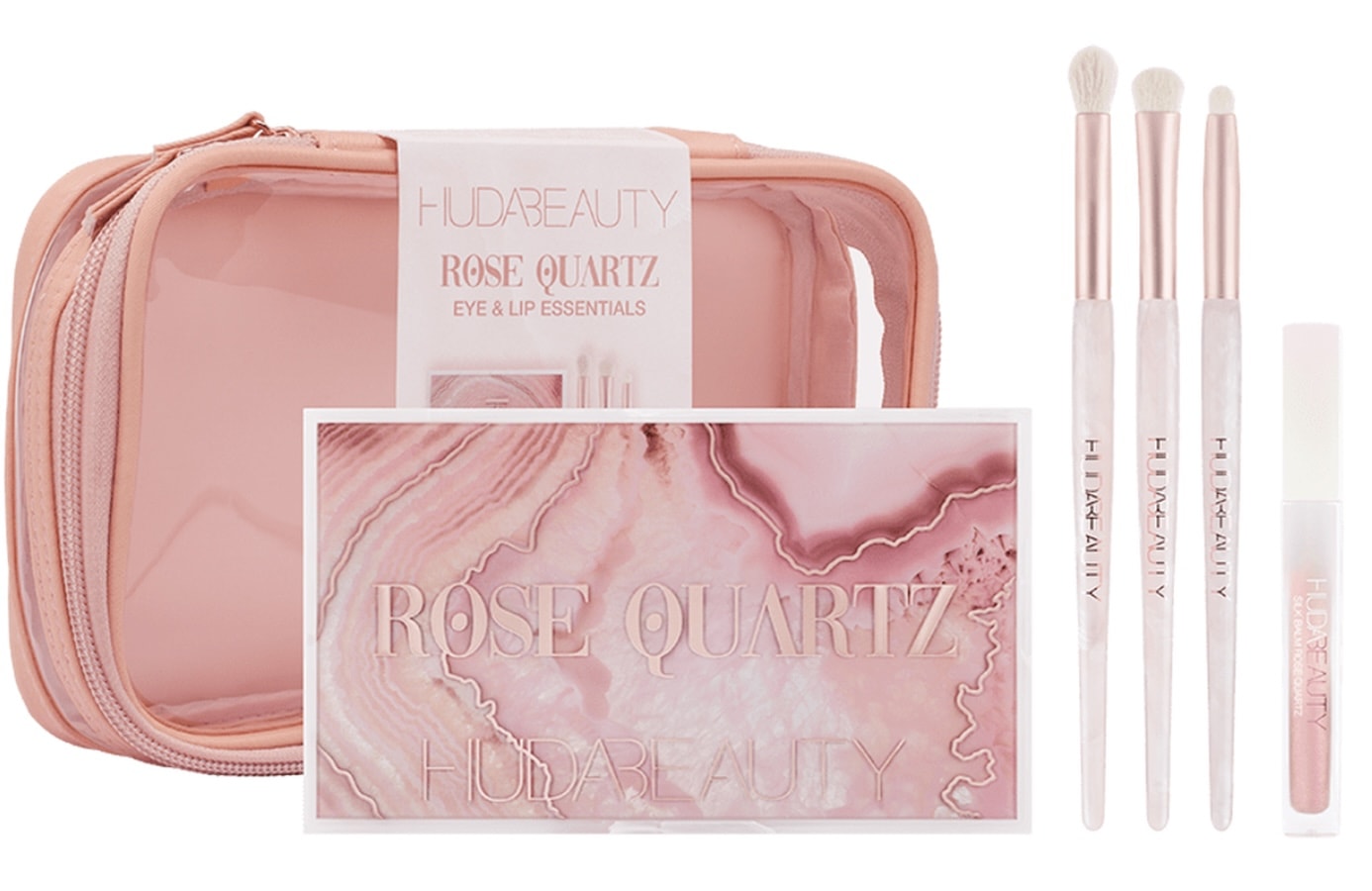 Le Rose Quartz Eye & Lip Essentials est disponible sur le site HUDA BEAUTY