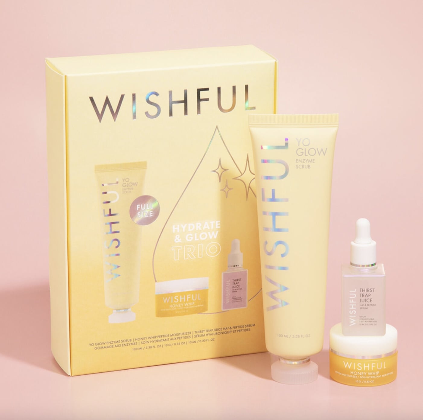 Ce coffret vous permettra d’exfolier, hydrater et éclaircir votre peau avec ce trio Wishful.