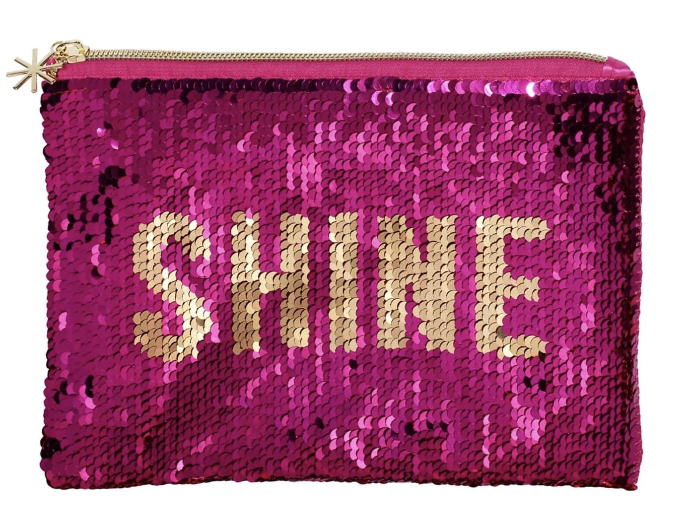 Transportez tous vos essentiels de vacances dans cette trousse de maquillage à paillettes réversible. Il suffit de passer votre main sur les paillettes réversibles pour révéler leur double face.