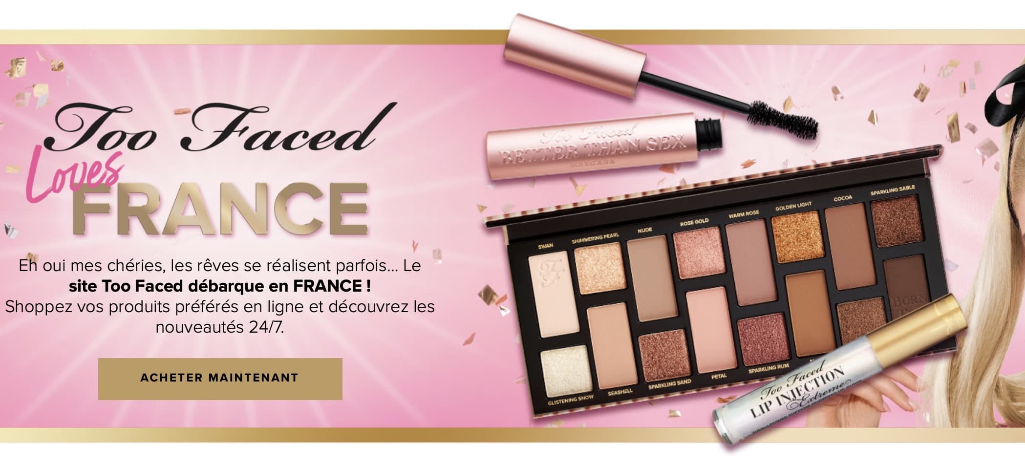 Les fans de la marque américaine Too Faced vont être ravis, ça y est la version européenne du site Too Faced débarque enfin en France. Vous retrouverez tous vos produits préférés sur la version TOO FACED EU.