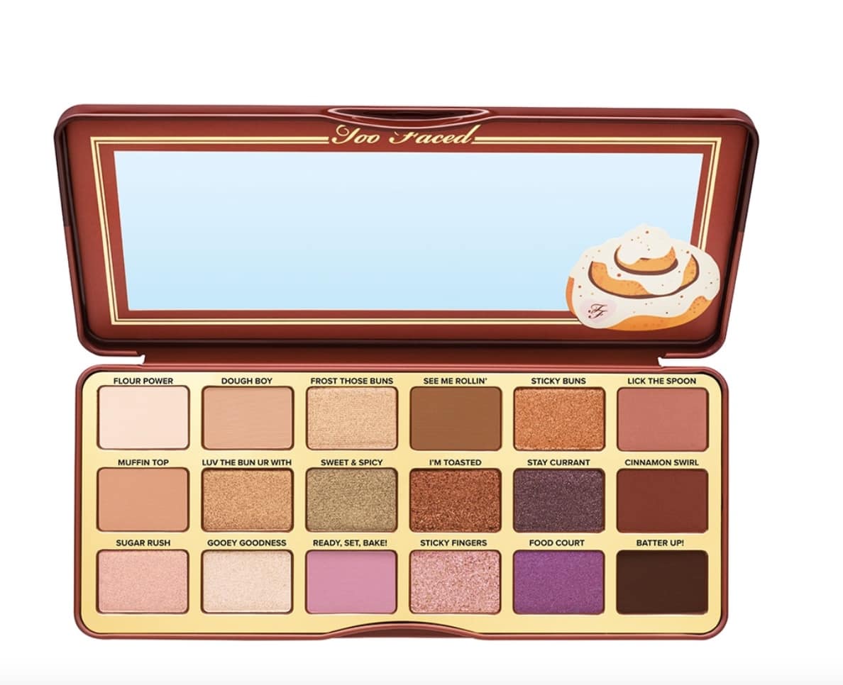 Rien de bien nouveau pour la nouvelle palette d’automne de Too Faced mais l’esprit et les teintes sont là. Dans la Cinnamon Swirl vous retrouverez 18 fards à paupières aux teintes chaudes avec une odeur de brioche à la cannelle. Le packaging est très sympa et nous plonge tout de suite dans l’ambiance cocooning de l’automne.