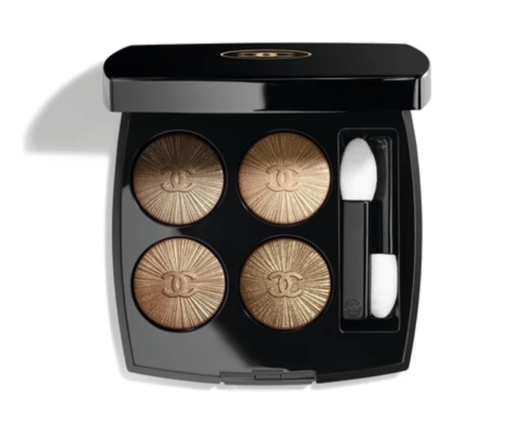 La palette Les 4 Ombres de la collection Printemps 2022 se présente avec un dégradé de beige doré allant au brun lumineux. Un quatuor classique et intemporel à porter tous les jours avec en détail des fils de tweed Chanel.