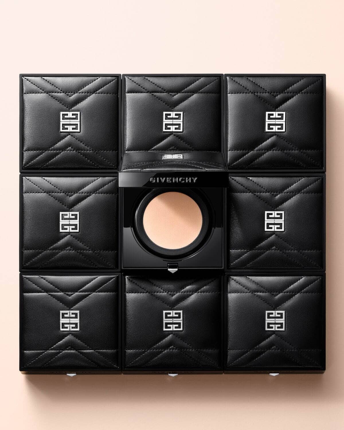Le Teint Couture Cushion est le fond de teint hydratant de Givenchy avec un rendu naturel qui unifie la peau. Vous le retrouverez disponible en seulement deux teintes dans ce superbe boitier en imitation cuir et noir avec ses finitions luxueuses comme son sac Antigona.