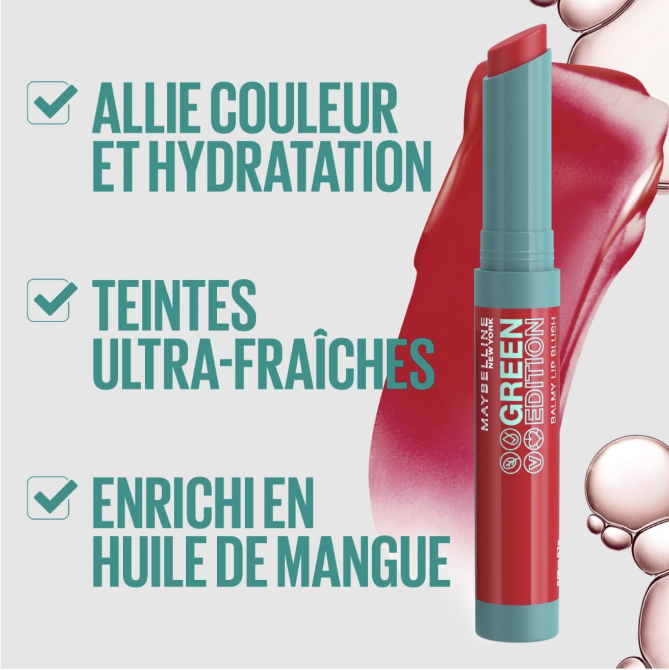 Le dernier produit (pour le moment) de cette collection Green Edition est le Balmy Lip Blush, un rouge à lèvres fondant et hydratant. Sa formule est composée à 93% d’ingrédients d’origine naturelle, elle est enrichie en huile de mangue pour une hydratation toute la journée. Il vogue sur la tendance de 2021 du baume teinté agréable et confortable à porter.