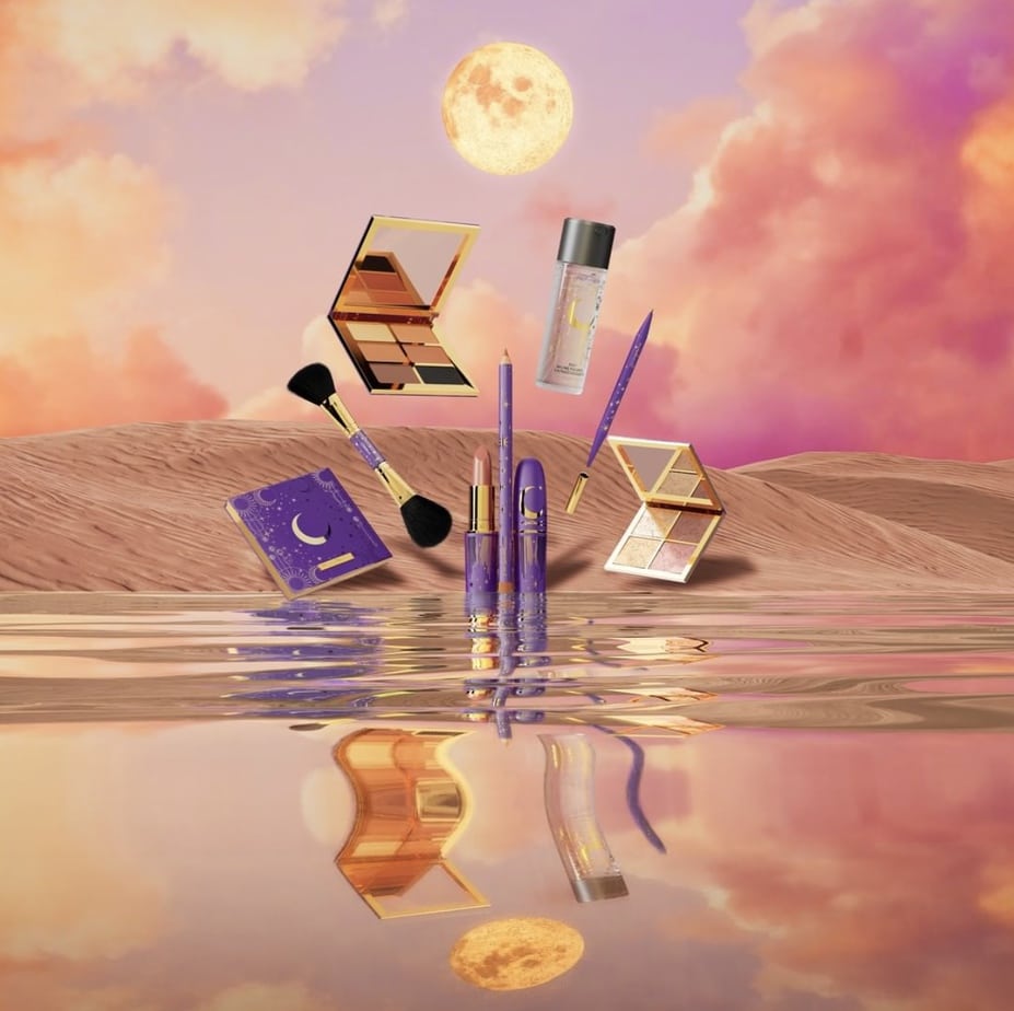 Un univers où sont représentés les symboles de la lune et des étoiles dorés avec un superbe packaging violet mat. La collection Magnificent Moon propose des produits avec des finis lumineux et des tonalités prenant leur inspiration du désert.