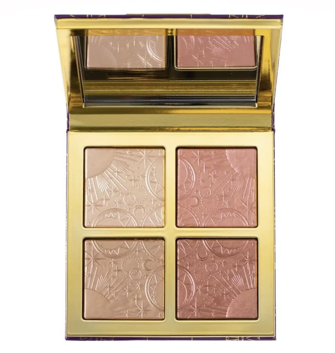 Cette superbe palette avec ses motifs astraux contient 4 teintes du fameux highlighter Extra Dimension de Mac Cosmetics.