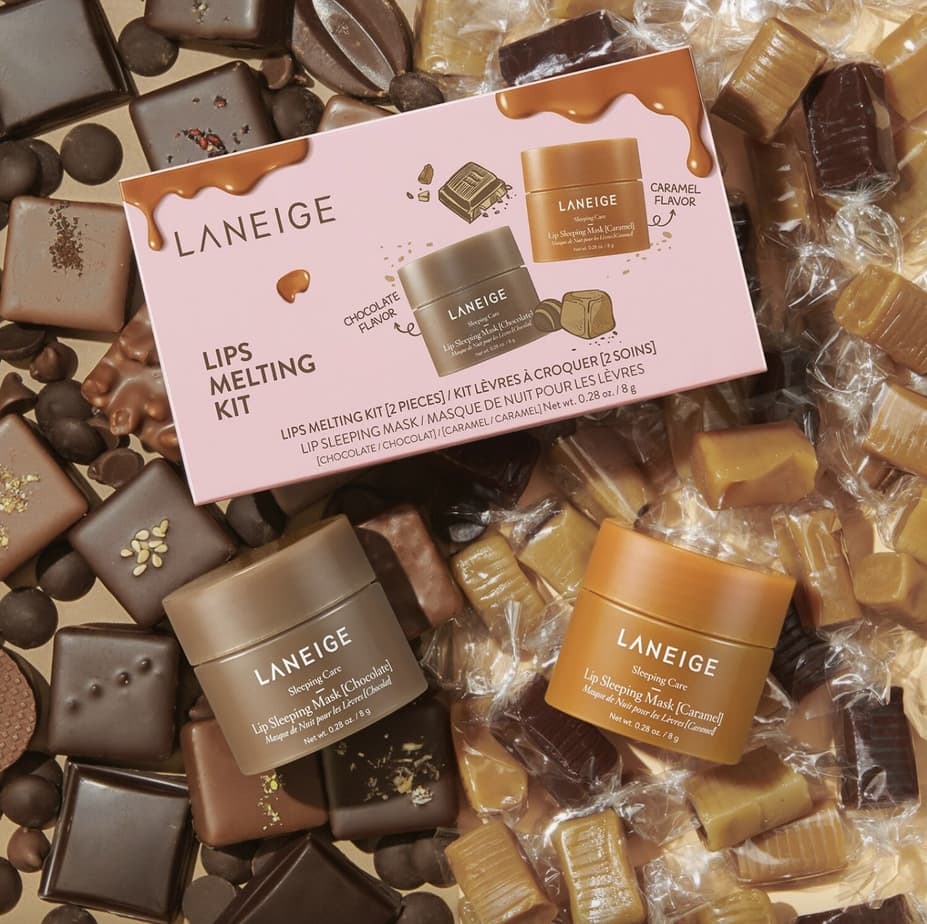 Ce kit Laneige est composé de deux baumes à lèvres chocolat et caramel, parfait pour terminer l’hiver et débuter le printemps avec des lèvres toutes douces. Avec la levée du masque et le retour de nos rouges à lèvres préférés, il est temps de chouchouter nos lèvres.