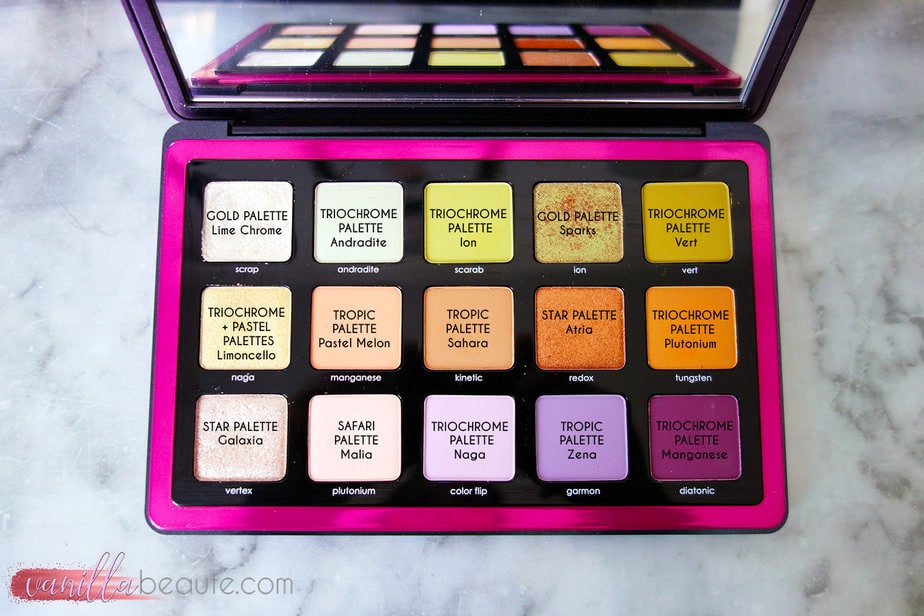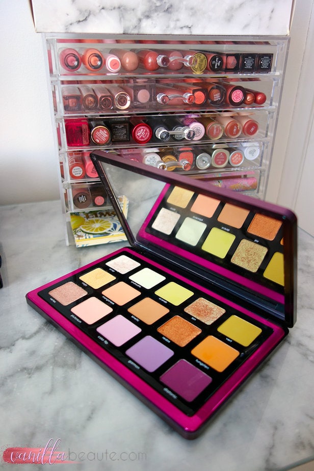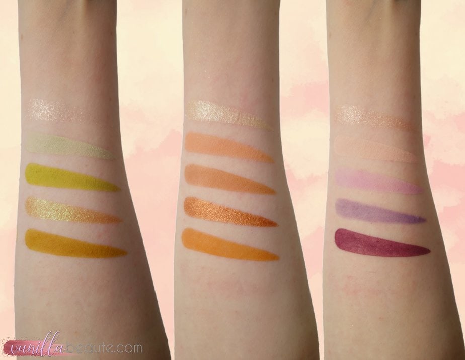 Concernant la seconde rangée, si vous n’avez pas la Tropic Palette car je sais que c’est compliqué pour se la procurer, vous pouvez regarder du côté de la Zendo Palette qui a une harmonie similaire. Le fard Limoncello, vous pouvez le retrouver dans la Pastel palette qui vient de sortir, c’est un jaune pâle lumineux.