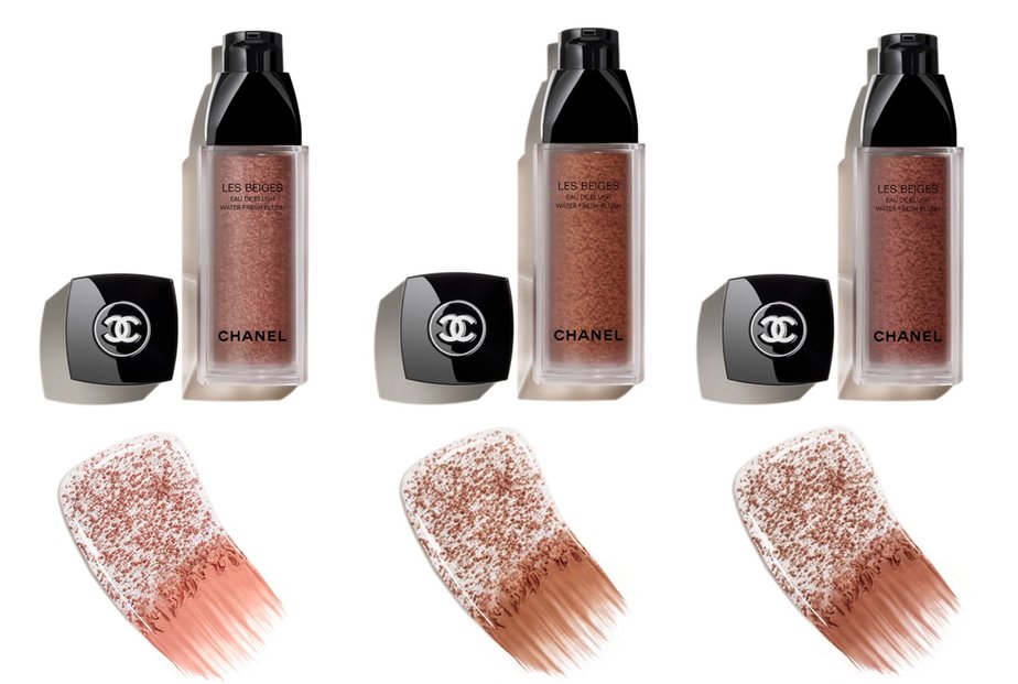 La maison Chanel a breveté l’Eau de blush qui est composée à 75 % d’eau et infusée de micro gouttelettes de pigment comme le fond de teint. Un fini semi transparent, aérien et frais avec une texture qui fond au contact de la peau. C’est le produit idéal pour un make-up léger effet peau nue.