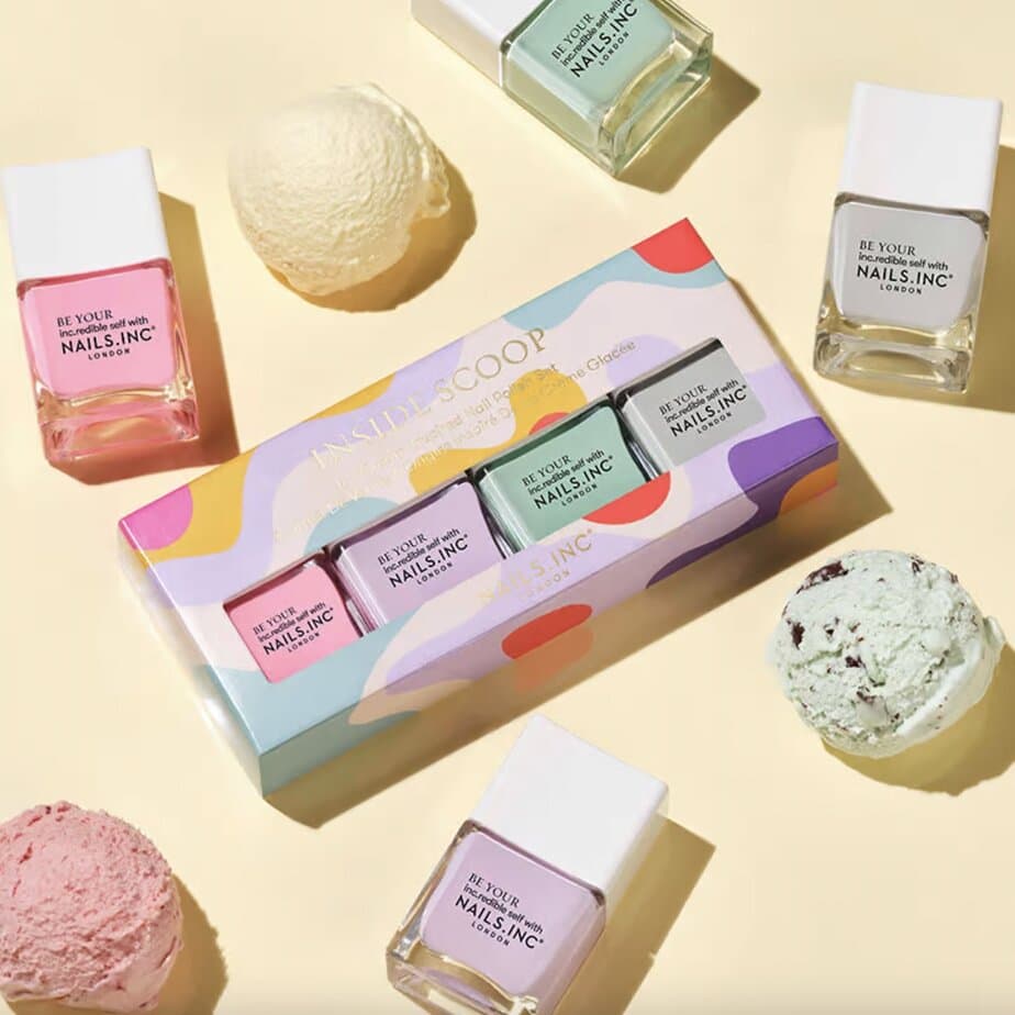Si vous préférez les nuances froides et pastels alors ce second kit de Nails.INC est parfait. Une collection inspirée des crèmes glacées typiques de l’été dans ce coffret de quatre vernis.