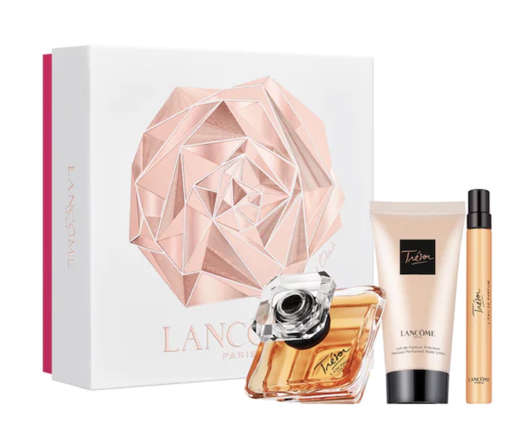 Ce coffret de Noël de Lancôme propose l’indétrônable parfum Trésor. Vous retrouverez des notes de rose, fleurs d’abricotier, fleurs de pêcher, muguet, vanille ou encore musc. Un parfum floral et doux à la fois.
