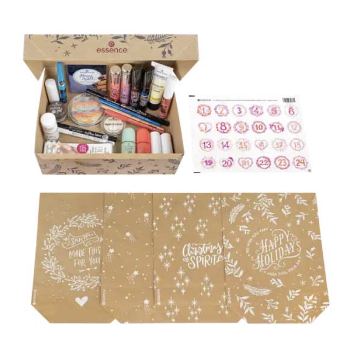 Comme celui de Catrice, le calendrier de l’Avent Essence DIY est à confectionner soi-même. Vous avez les pochettes, les stickers avec les numéros et les produits que vous devez emballer. Un proche, un ami, n’importe qui peut le faire à votre place pour garder la surprise le jour J.