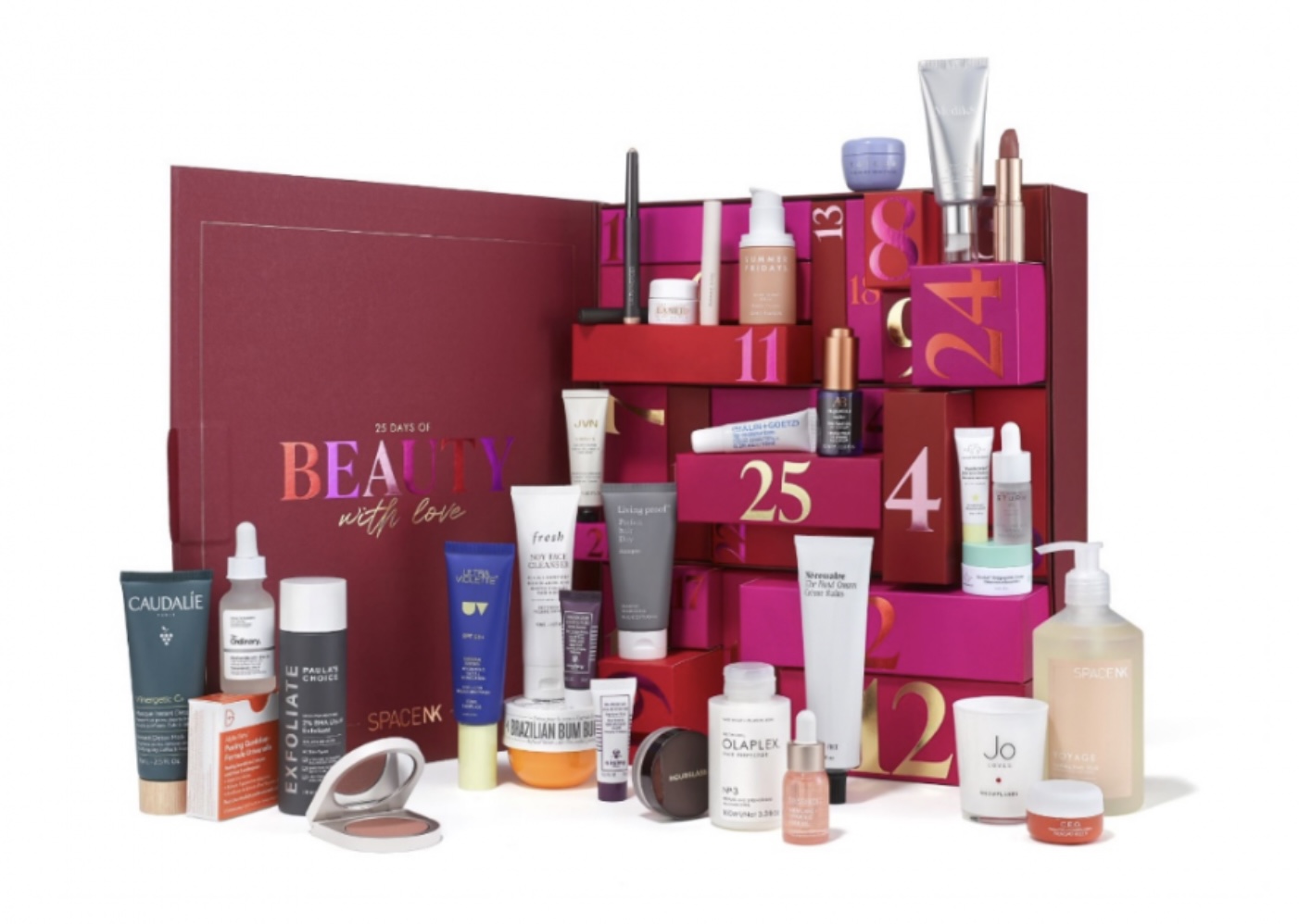Après Cult Beauty, le calendrier de l’Avent 2022 de Space NK est l’un des plus luxueux. Dans sa robe rouge, doré et fuchsia, plus de 900€ de valeur avec 31 produits à l’intérieur de ses 25 cases.