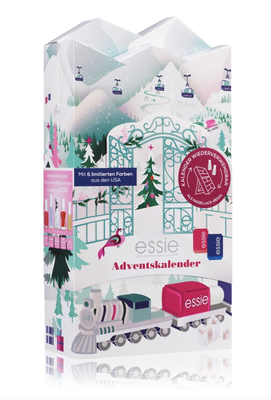 Le calendrier de l’Avent Essie 2022 comporte 24 cases et son packaging est fait pour être réutilisé. Après Noël, il vous servira d’étagère pour y mettre vos vernis. Idée pratique et originale pour ranger toutes les surprises du calendrier.