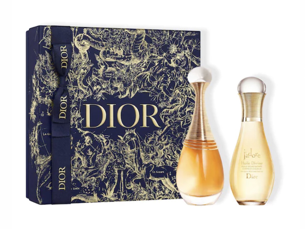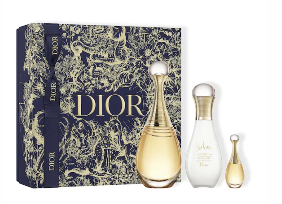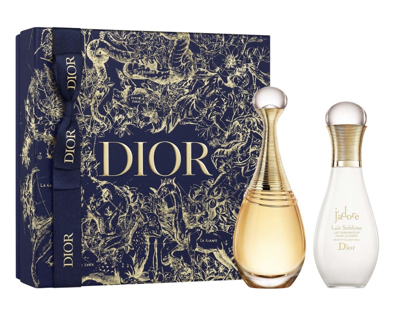 Place au second coffret avec le célèbre parfum J’adore, un parfum iconique de la Maison Dior avec des notes florales et fruitées. Il est accompagné du Lait Sublime pour le corps.