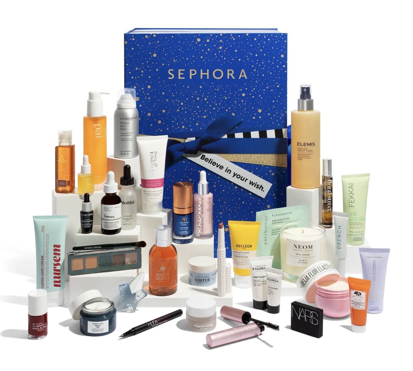 A l’intérieur de ce coffret pas moins de 34 surprises avec 17 produits en taille vente pour une valeur de plus de 810€. Du jamais vu pour l’enseigne Sephora en France. Si vous habitez hors de France, vous pouvez le commander sinon il faut passer par une plateforme de réexpédition.