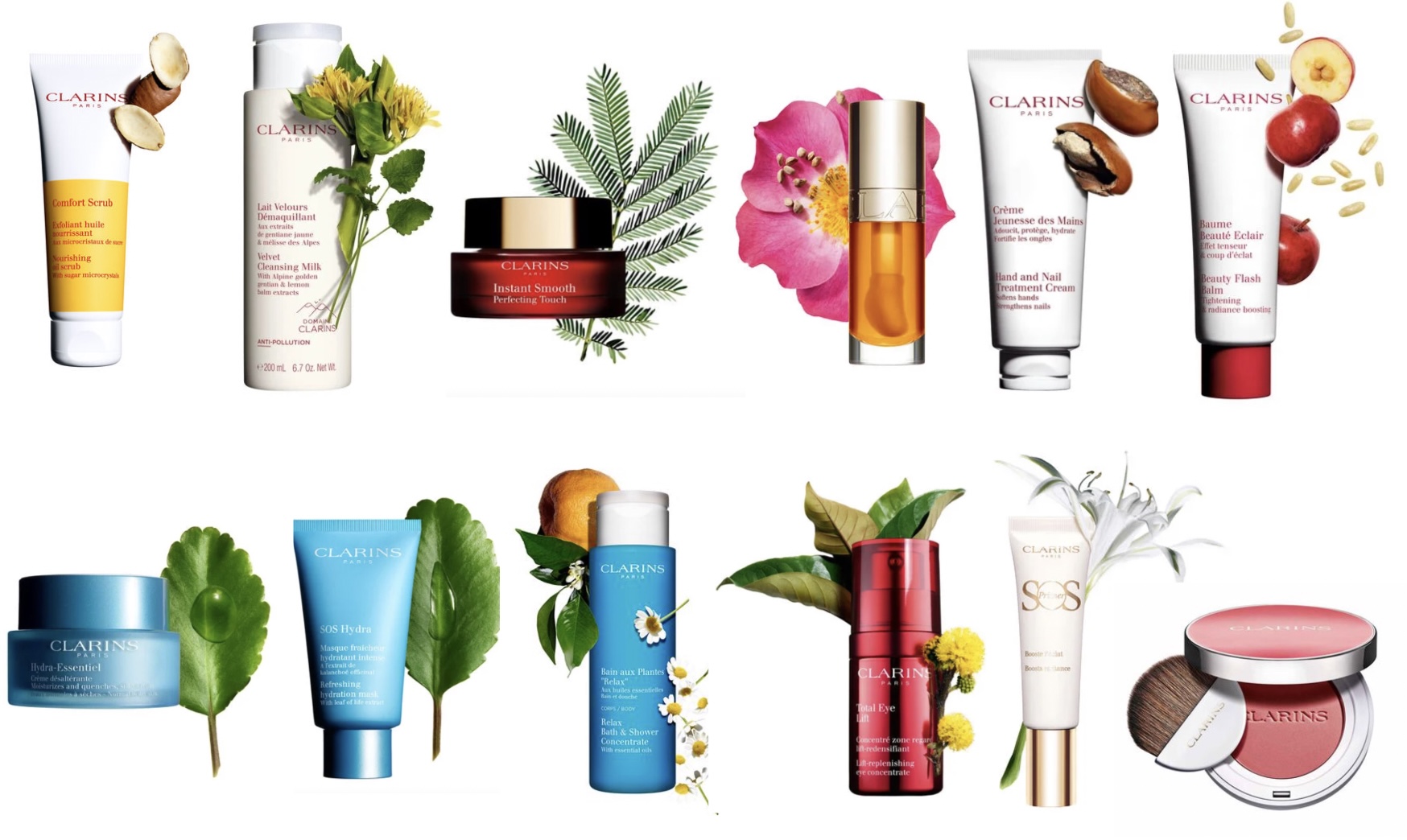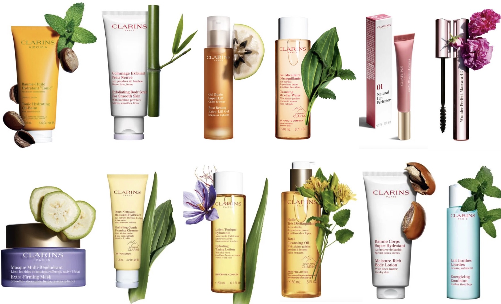 Vous retrouverez des soins de différentes gammes de Clarins qui conviendront aussi bien aux hommes qu’aux femmes et quelques références de maquillage.