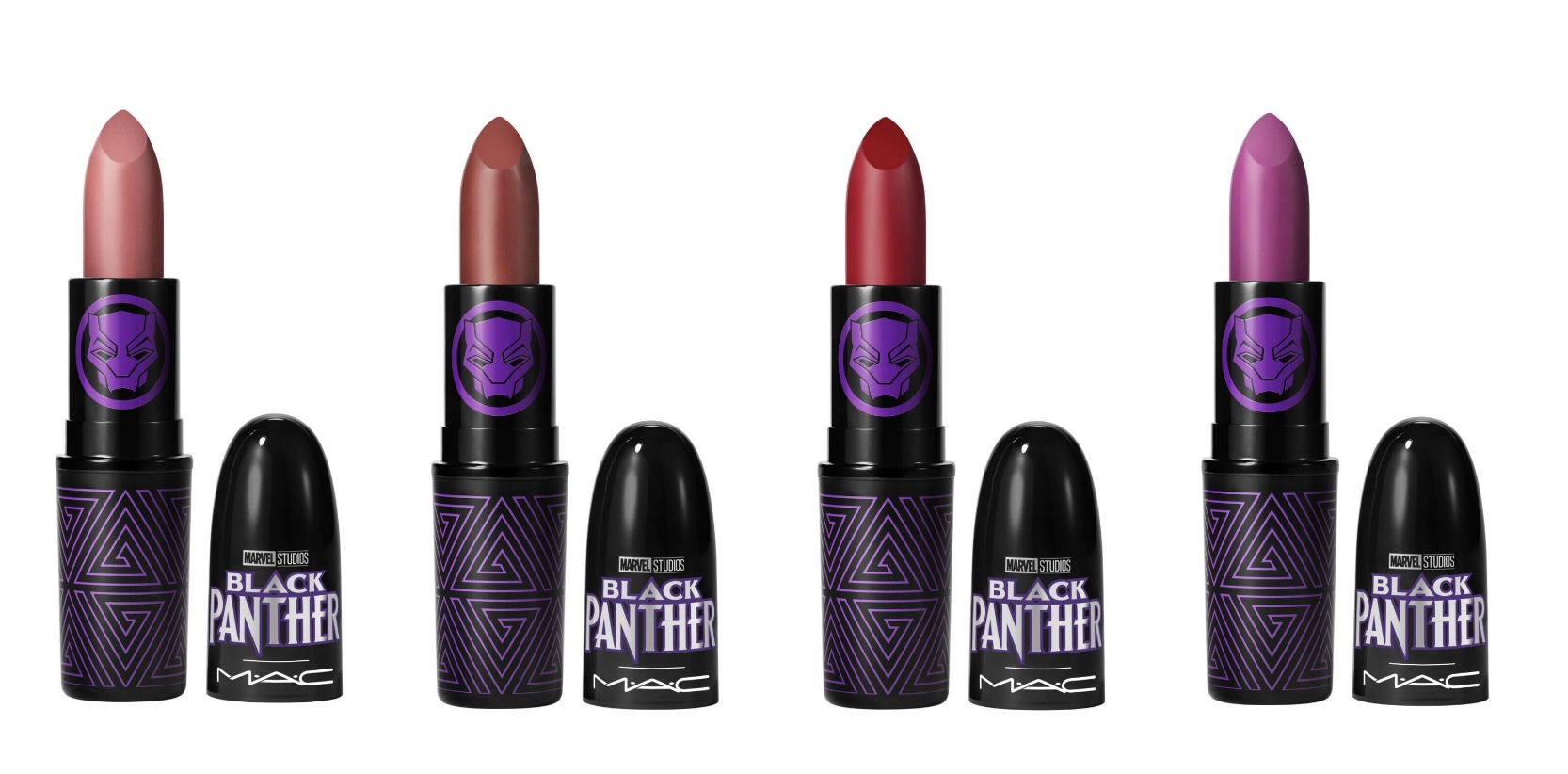 Le rouge à lèvres de MAC est présenté dans 4 teintes inspirées du film avec trois rouges à lèvres neutres et une référence violette. Les packagings sont en édition limitée.