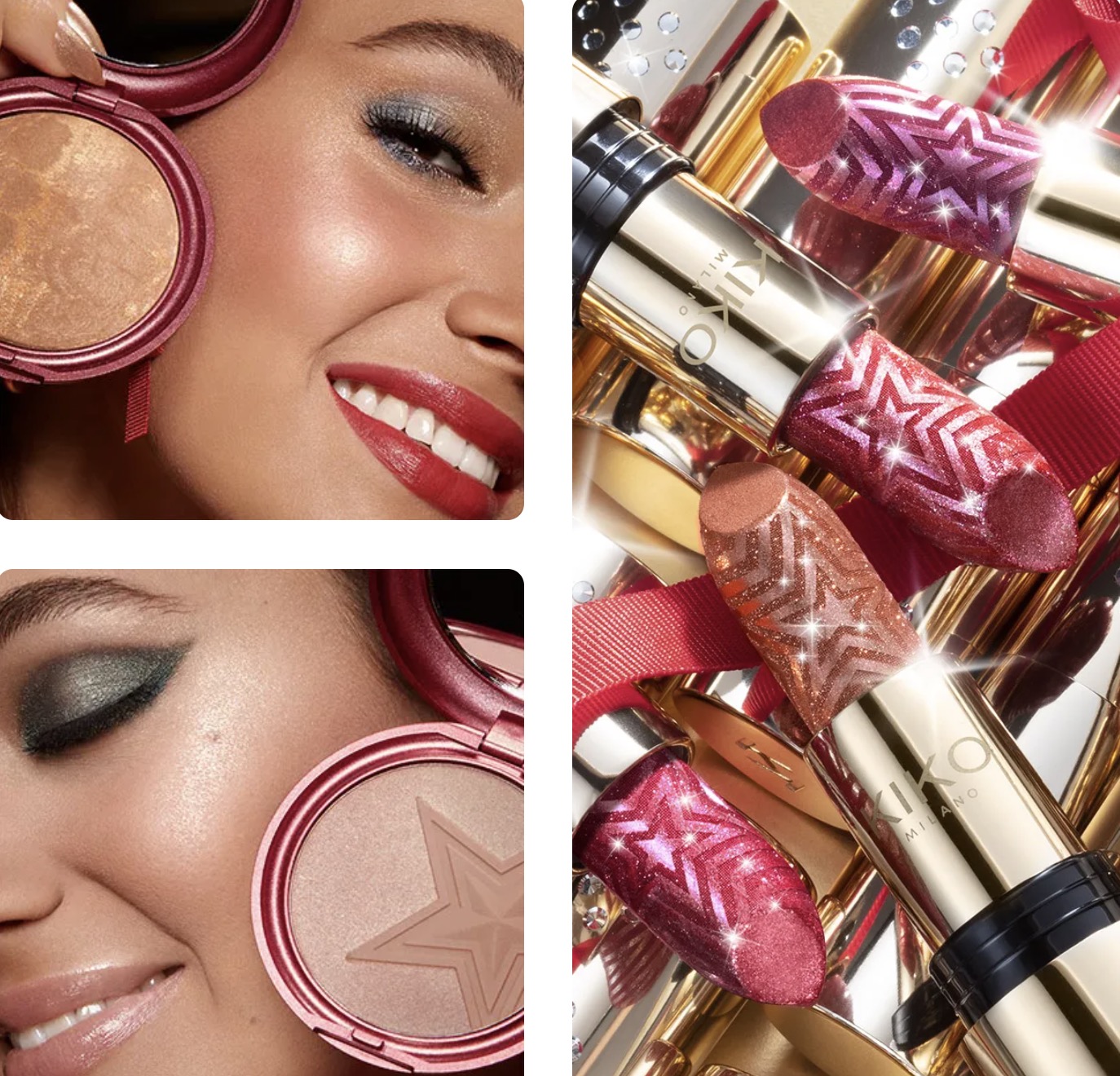 Du rouge, de l’or, des motifs étoilés, vous voilà transportez dans la collection de Noël 2022 de KIKO. C’est une collection de Noël complète avec des palettes pour les yeux et le teint, des rouges à lèvres, mascara, tout pour se faire une routine complète pour les fêtes de fin d’année.