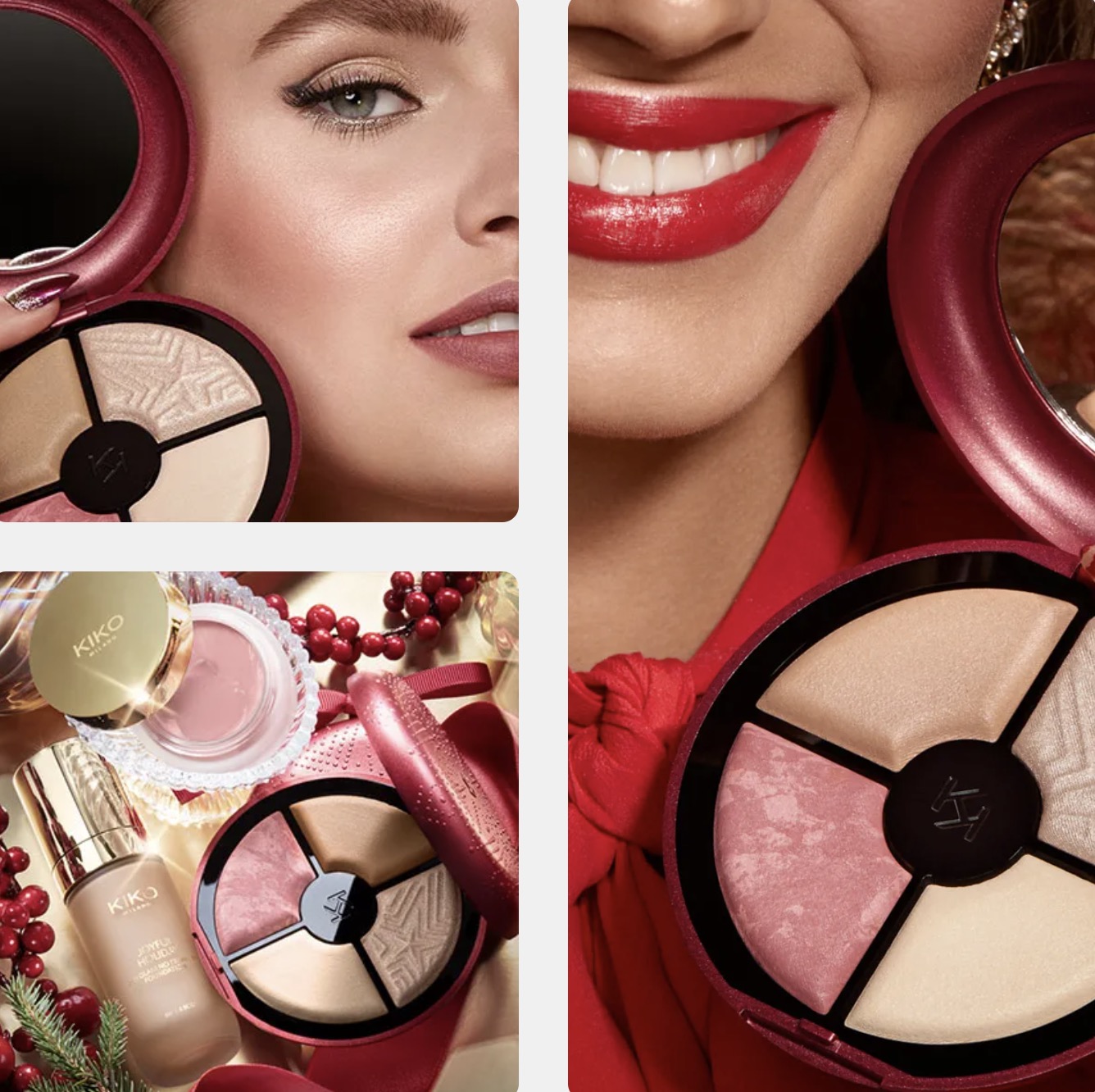 On commence la collection de Noël 2022 de KIKO Milano avec cette palette pour le teint qui contient 4 poudres cuites.