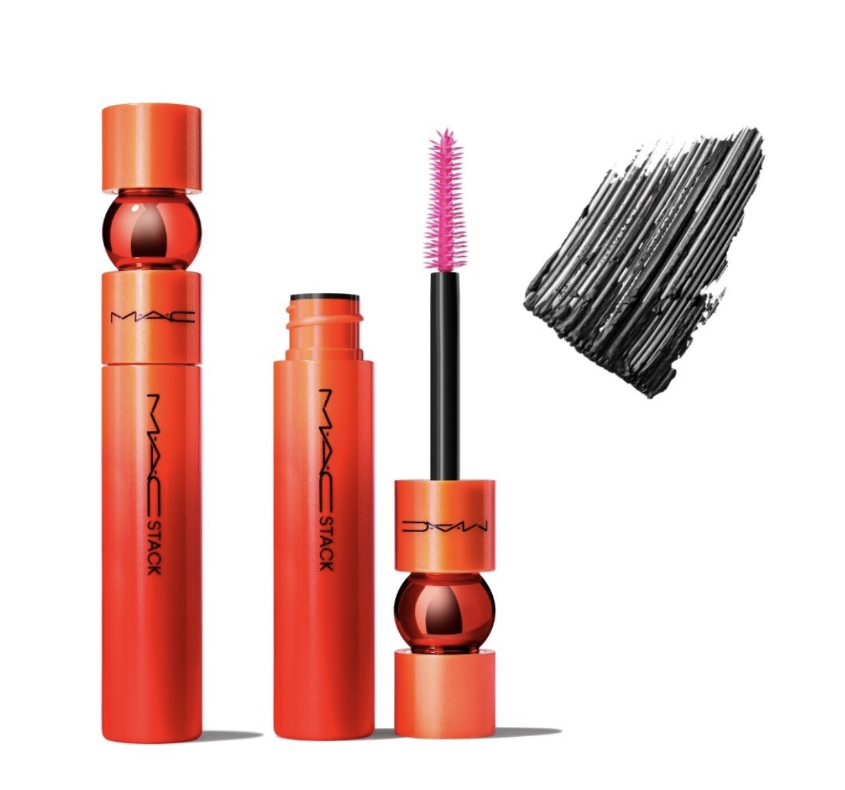 Le dernier mascara de MAC qui est devenu un best seller à également droit à un relooking. Le mascara M.A.C Stack est présenté dans un packaging dégradé orange/rouge.