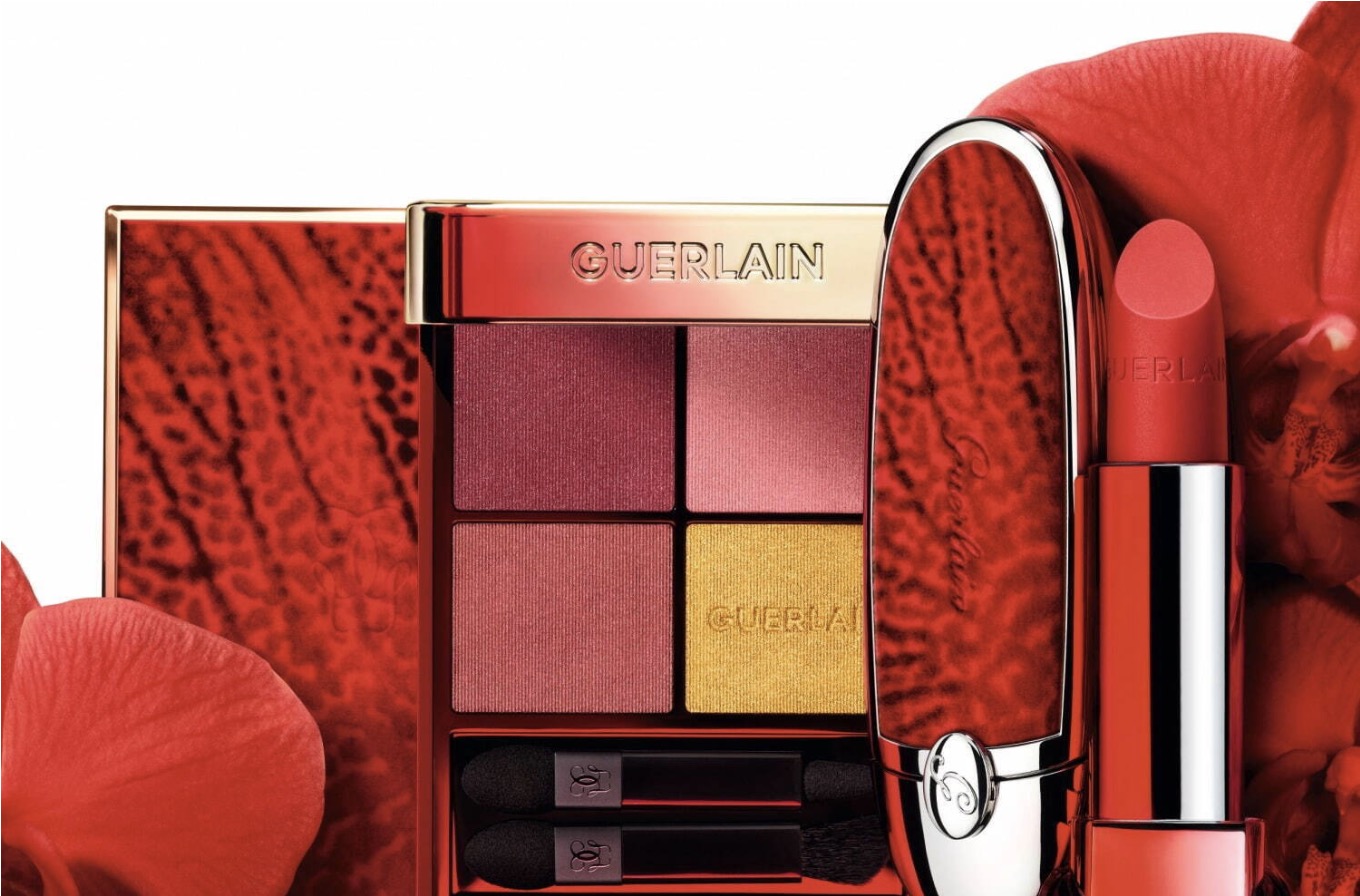 Guerlain présente sa nouvelle collection « Red Orchid » en l’honneur de la fleur emblématique de la marque. Une collection qui propose une palette pour les yeux, un produit teint et des rouges à lèvres inspirés des teintes naturelles de différentes orchidées. Le superbe visuel sur les produits représente l’orchidée Vanda Rouge avec ses pétales veinées.