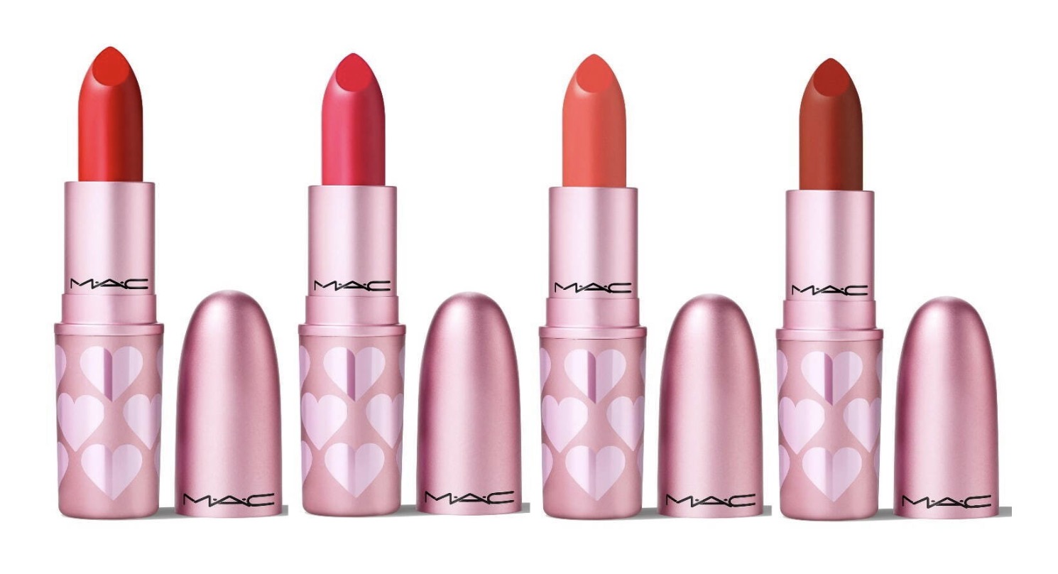Pour la Saint Valentin 2023, MAC réinvente ses classiques avec le rouge à lèvres dans un étui aux couleurs de la collection avec des petits cœurs en édition limitée. Vous le retrouverez dans 4 teintes avec les finis mat et retro mat.