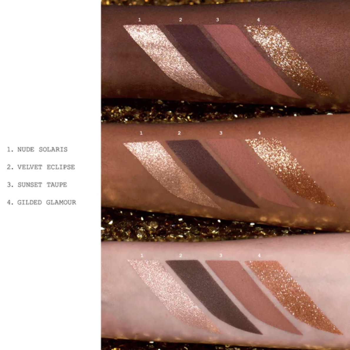 • Desert Glow : bronze avec perle dorée étincelante