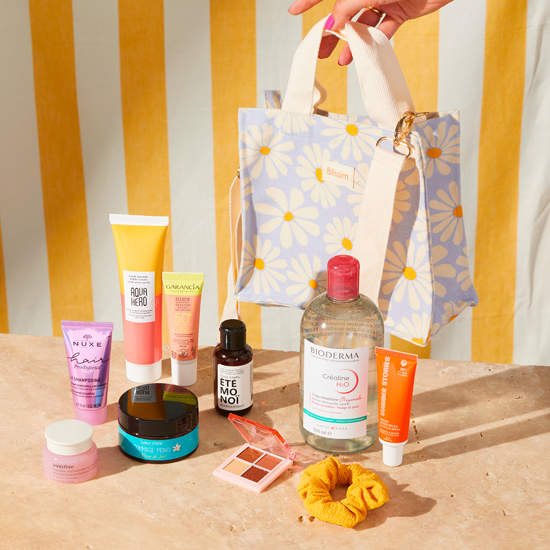 Parfait pour la plage et les promenades, Blissim propose 10 produits dans un mini cabas au choix entre deux coloris lors du paiement.