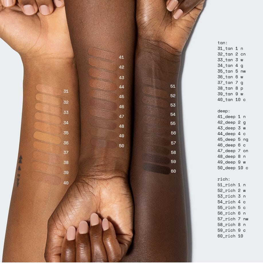 Ariana Grande propose le « Sweetener Foundation » dans 60 teintes, il rejoint la marque de Fenty Beauty par son large choix de références qui conviendra à un maximum de carnation dès la sortie du produit.