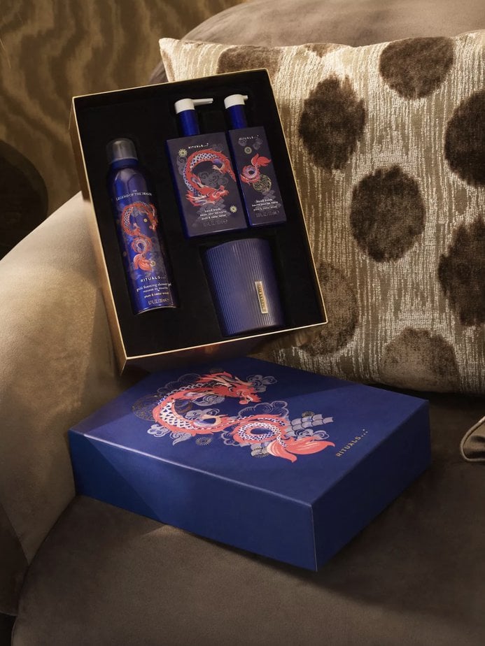 Parfum, gommage et crème corps, mousse de douche, coffrets cadeaux, la collection The Legend Of the Dragon de Rituals est sous toutes les formes.