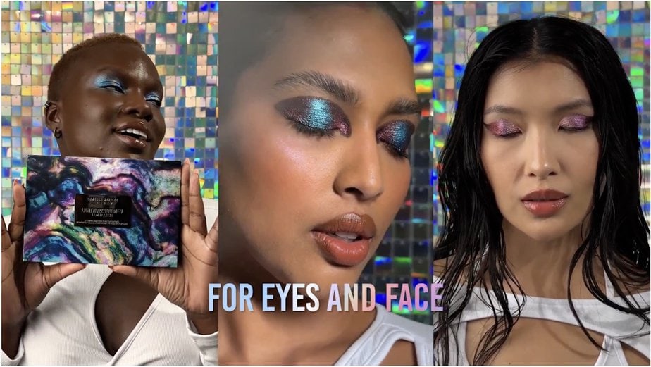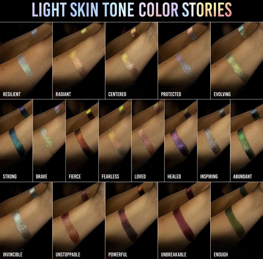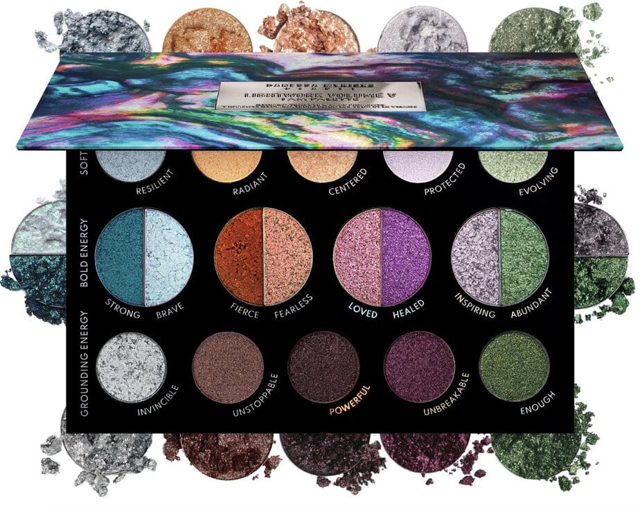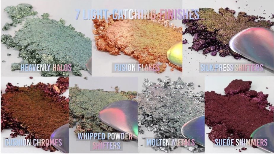 Vous aimez les finis lumineux ? Vous en trouverez 7 différents dans la nouvelle palette de Danessa Myricks avec « Heavenly Halos » un fini holographique, « Fusion Flakes » des flocons lumineux, « Silk Press Shifters » pour un effet de soie liquide multi dimensionnel, « Whipped Powder Shifters » un fini hybride gel/poudre, « Molten Metals » pour un effet de métal liquide, « Suede Shimmers » un classique avec des paillettes au fini suédine et « Cushion Chromes » le fini multi chromes par excellence.