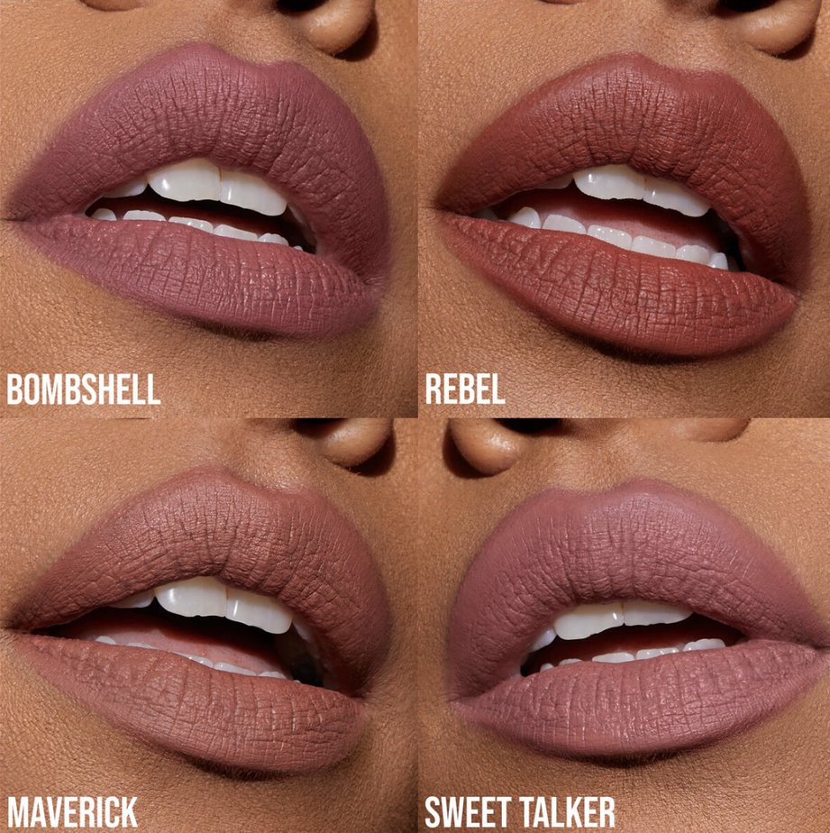 Pour les fêtes, retrouvez ce quad de rouges à lèvres liquides mats Pretty Grunge dans quatre teintes emblématiques en format voyage. Il est composé de deux teintes que l’on ne présente plus avec Bombshell et Sweet Talker, ainsi que deux nouvelles teintes, Maverick et Rebel.