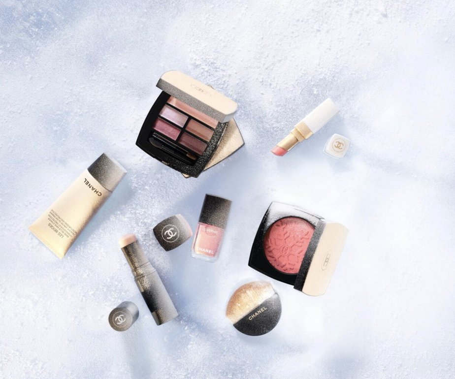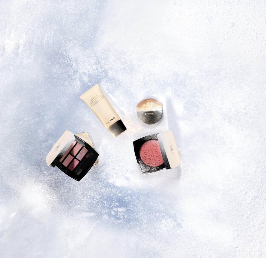 Un univers glacial qui nous transporte dans un paysage enneigé avec le motif flocon de neige gravé sur les poudres, des produits dans des nuances naturelles pour un teint frais comme à la montage et le célèbre coloris beige typique de CHANEL sur les packagings.