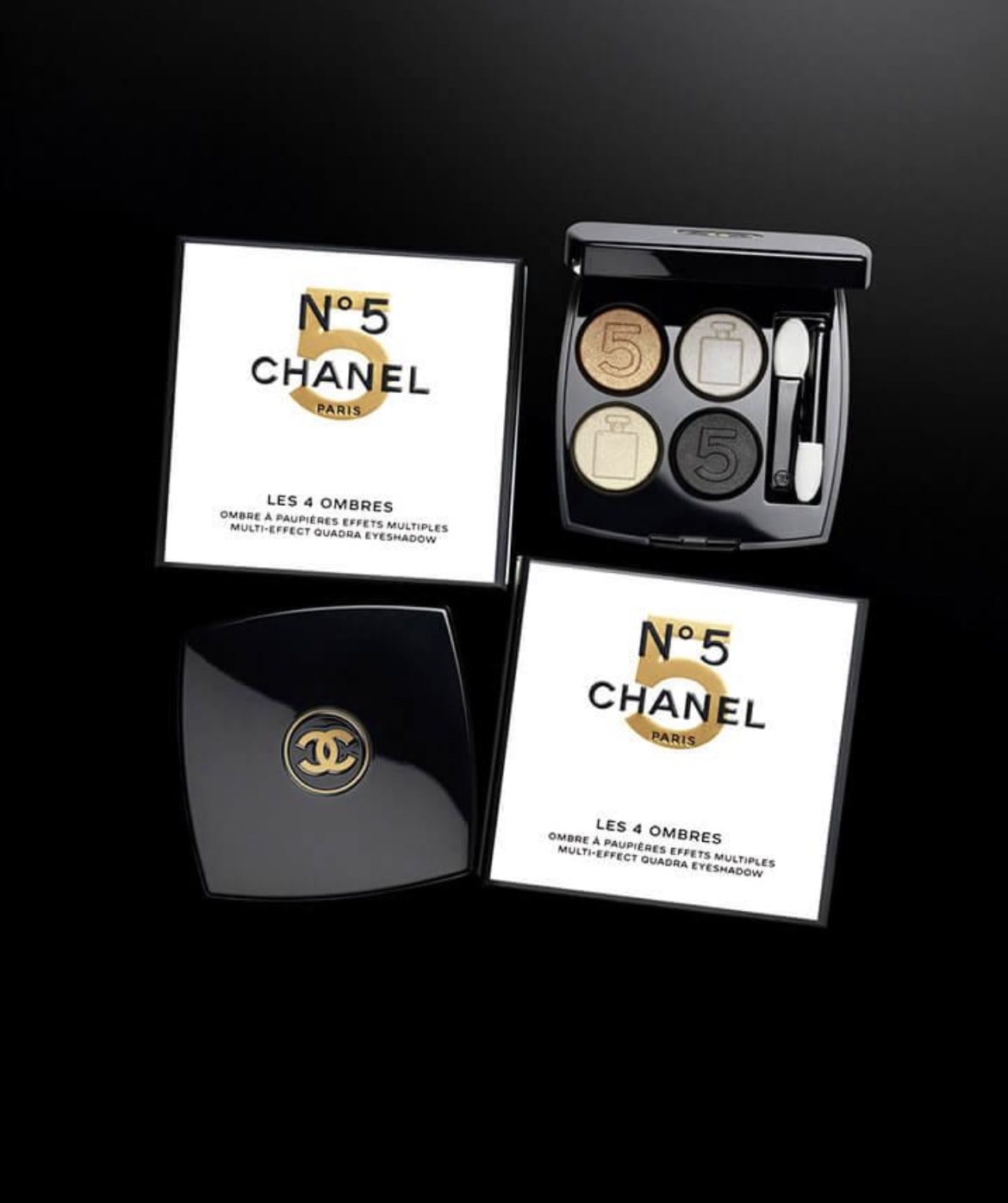 Passons au maquillage avec le premier produit de cette collection de Noël 2021. CHANEL rend hommage au chiffre 5 avec une édition limitée des palettes Les 4 Ombres. Des couleurs sobres et élégantes qui rappellent le parfum.
