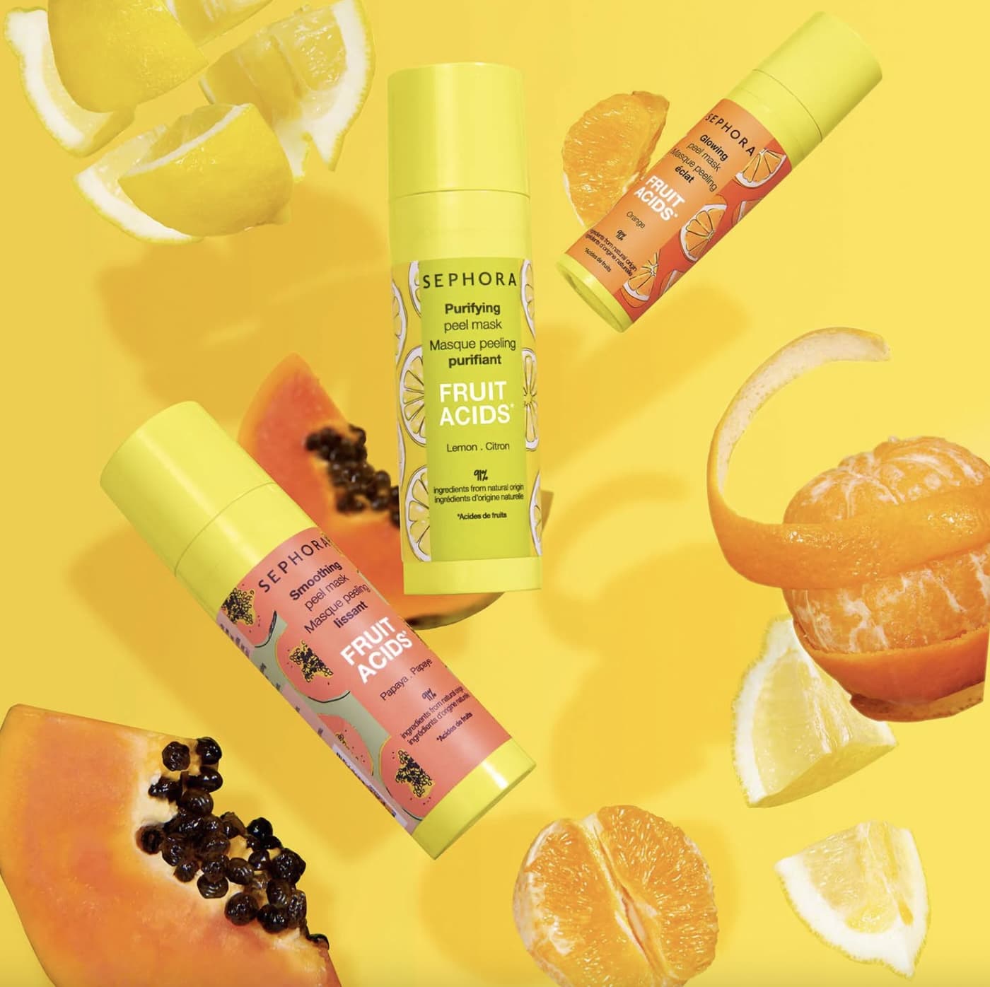 Les nouveaux masques peeling aux acides de fruit Sephora Collection promettent un effet peau neuve et des résultats dès la première utilisation. Cette nouvelle gamme comprend pour l’instant 3 masques, au citron qui purifie, à l’orange pour l’éclat et à la papaye pour un effet lissant.