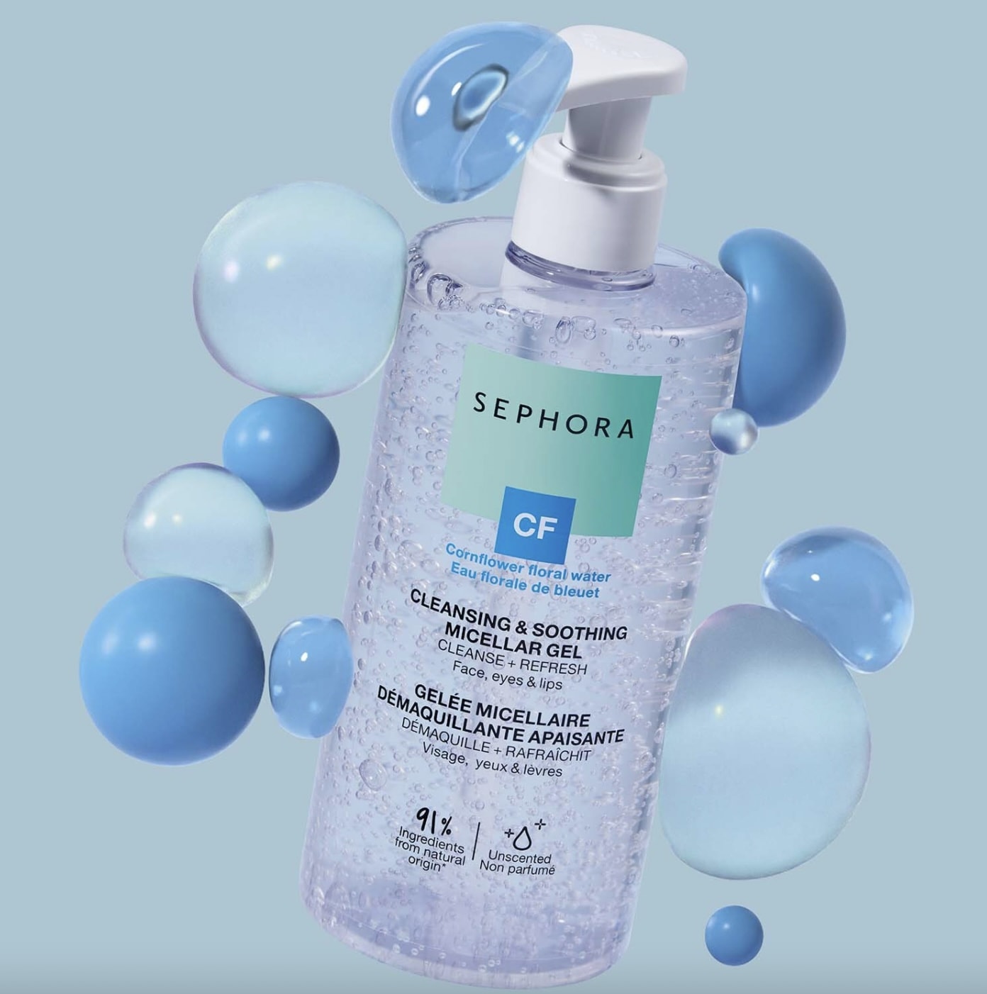 A l’approche des beaux jours et avec le printemps qui arrive, Sephora propose la Gelée Micellaire Démaquillante qui est également non parfumée. Elle démaquille les yeux et le visage avec une texture fraiche et fondante à l’eau de bleuet.