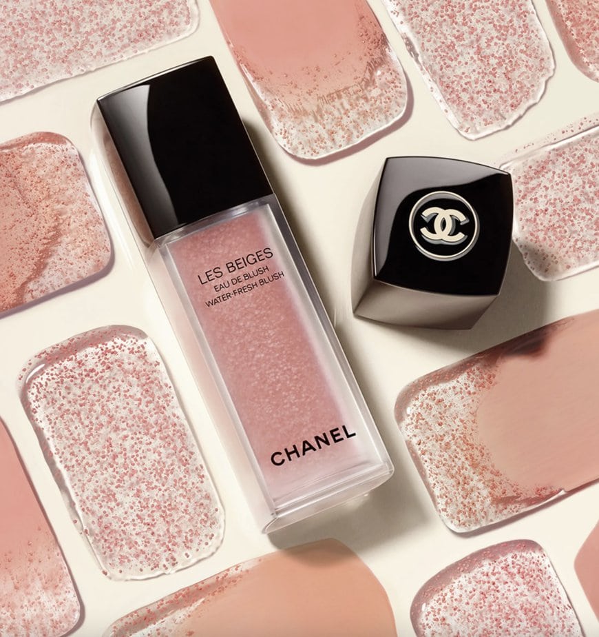 La maison Chanel a breveté l’Eau de blush qui est composée à 75 % d’eau et infusée de micro gouttelettes de pigment comme le fond de teint. Un fini semi transparent, aérien et frais avec une texture qui fond au contact de la peau. C’est le produit idéal pour un make-up léger effet peau nue.