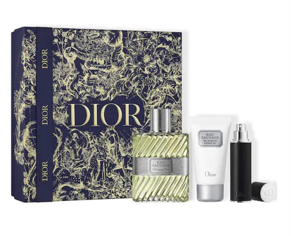 Les hommes ont aussi droit à des superbes coffrets de parfum pour Noël. Le cadeau idéal pour tous ceux qui aiment le célèbre Dior Sauvage.