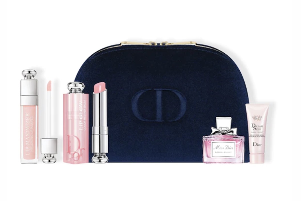 Le coffret ultime pour les amateurs de parfum, soin et de maquillage réunit dans une trousse bleu marine avec les initiales CD. Un sublime cadeau à offrir à Noël.