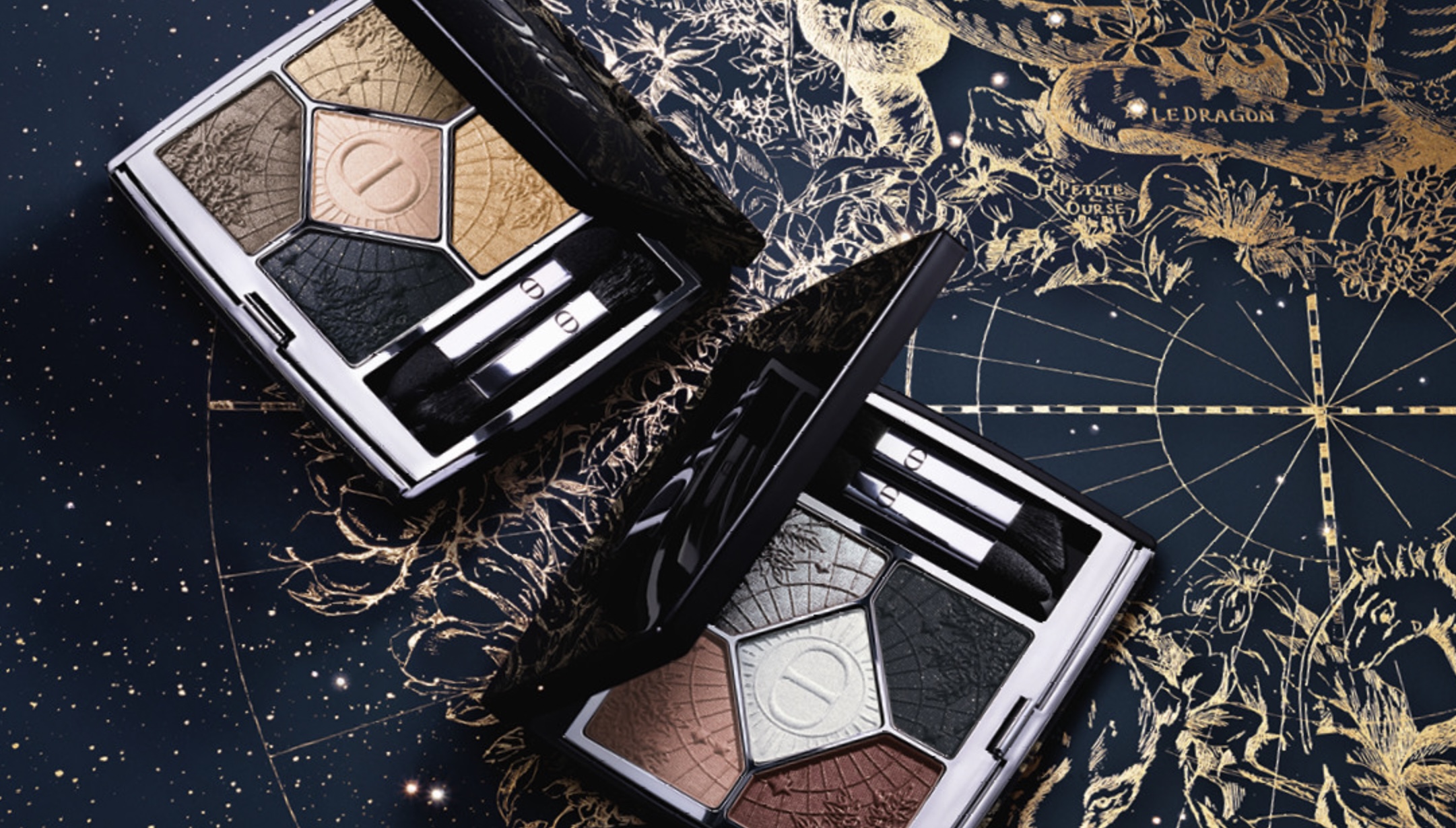La célèbre palette pour les yeux Dior 5 Couleurs Couture célèbre les fêtes et arrive avec deux harmonies inspirées du ciel étoilé.