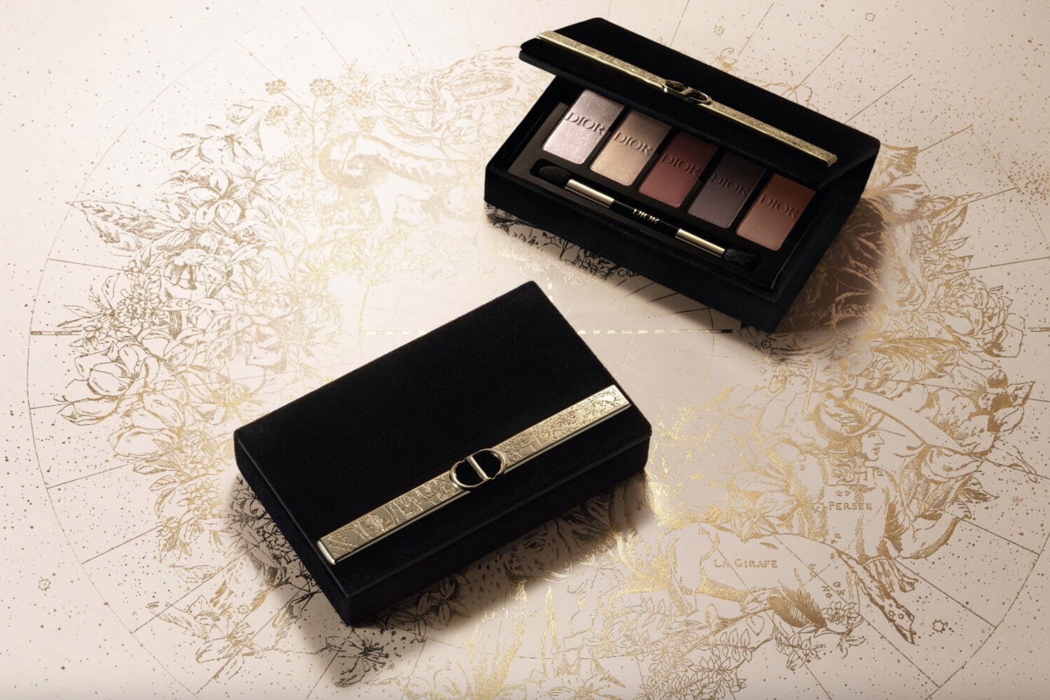 Pour Noël Dior propose cette palette de maquillage multi fonction. Un écrin parsemé d’étoiles, de fleurs et de constellations gravés qui renferme plusieurs produits.