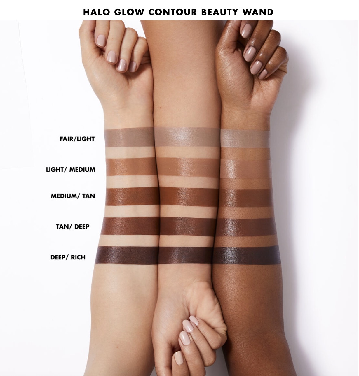 On termine avec le Halo Glow Contour Beauty Wand. Le produit parfait pour faire du contouring avec la teinte Fair/Light qui est un brun froid et 4 autres nuances pour donner de la chaleur à votre teint. Sa formule hydratante ne marque pas la peau et donne un rendu naturel et radieux digne d’un retour de vacances au soleil.
