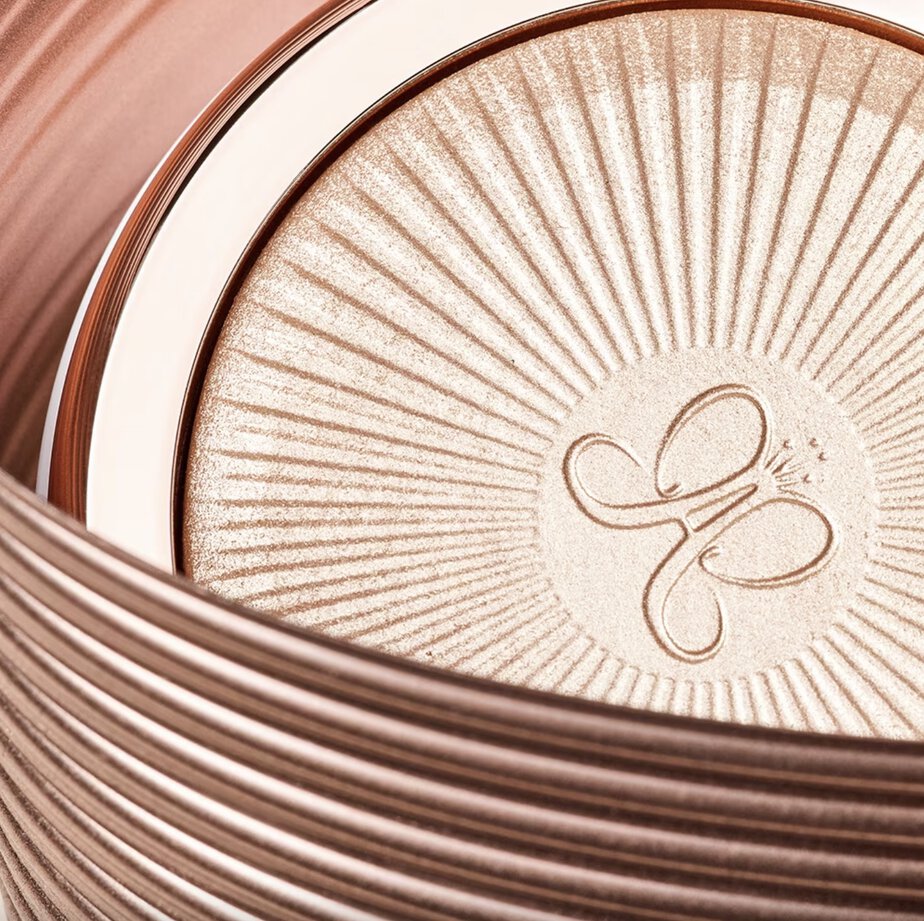Le « Glow Seeker Highlighter » d’Anastasia Beverly Hills se présente dans un compact chic et élégant dans les coloris blanc et rose gold. Une délicatesse dans le boitier qui se retrouve sur la poudre avec le logo gravé et entouré de faisceaux.